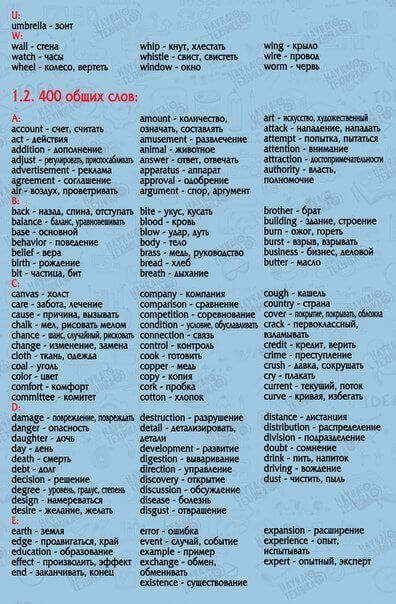 Для тех, кто хочет освоить наиболее нужные и популярные в английском слова, мы представляем их хит-парад: только 850 слов Basic English удостоились чести быть в списке. Сгруппированные, расположенные по алфавиту и с переводом слова уже ждут вашего внимания.