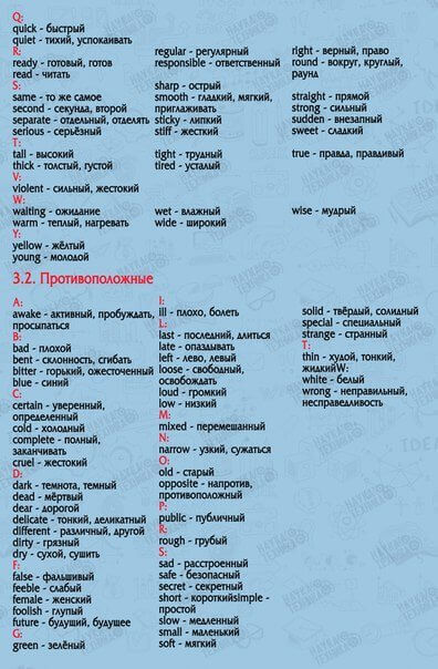 3) выражение качества (150 слов, из них 100 общих и 50 с противоположным значением).